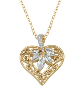 Image Name: 18K Gold-Over Brass Genuine White Topaz and Diamond Accent Heart ...