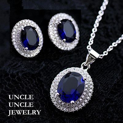 Image Name: High Quality!!! 18K White Gold Plated Blue Sapphire Rhinstones Micro ...